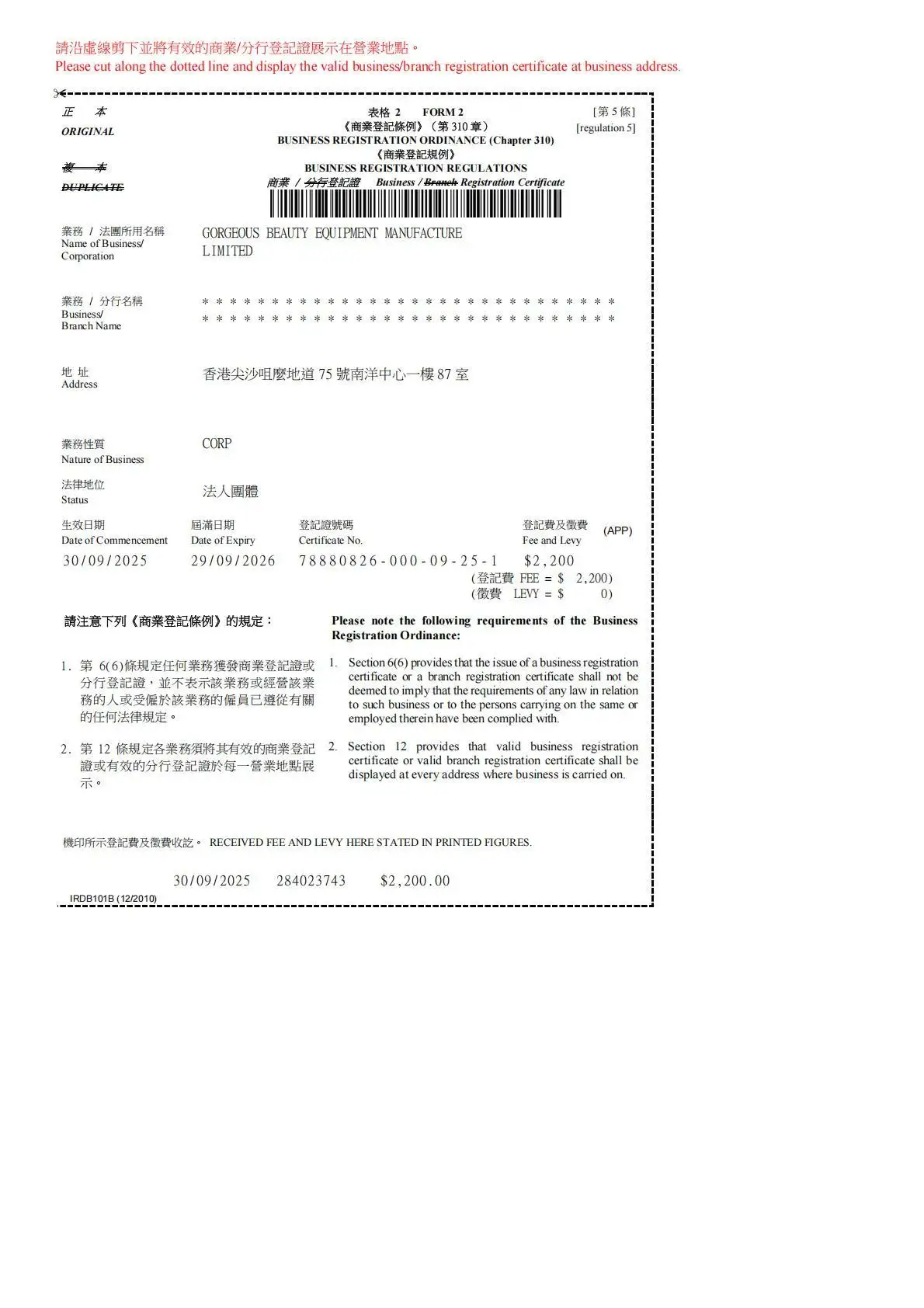 Company Name : Gorgeous Beauty Equipment Manufacture Limited